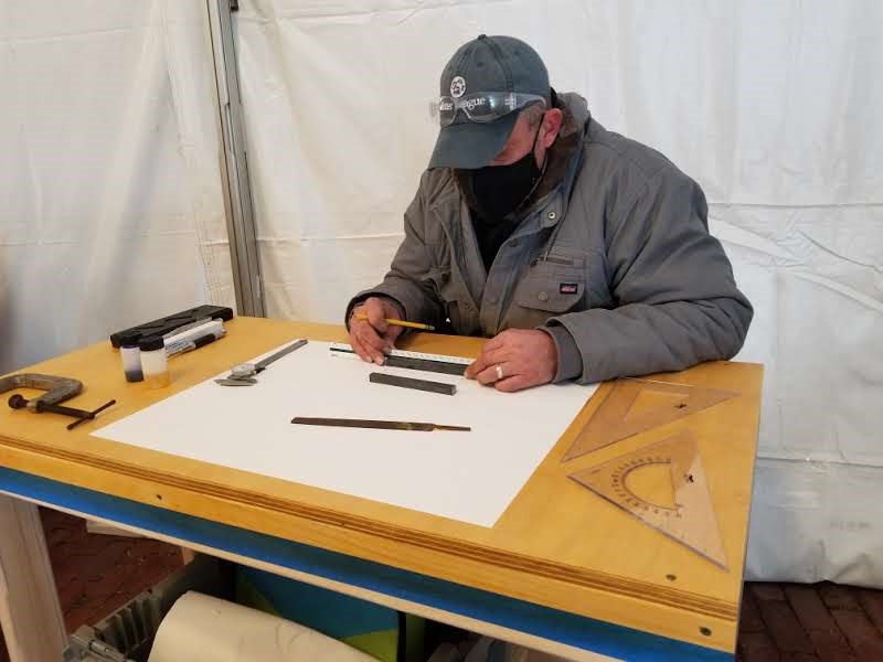 John Flis (Middletown, R.I.) lays out a measurement as he builds a machinist’s clamp during OHPRI’s recent workforce development program conducted in partnership with CCRI. (Photo courtesy of OHPRI)