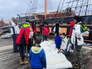 through sense of place as they study navigation, explore Rhode Island’s complex historical narrative and BIPOC maritime history, and investigate the natural and human influenced features of Narragansett Bay. Rotating through a selection of interconnected learning stations that highlight concepts in STEAM education embodied in sailing and operating the ship, students come away from the experience with a newfound understanding and appreciation of what it means to be a civically engaged and ocean literate 21c citizen, and aware of career opportunities in the maritime industry and marine trades. The curriculum for the program is a collaborative project incorporating input from the Rhode Island Black Heritage Society, URI Department of Marine Affairs, and other OHPRI partners.